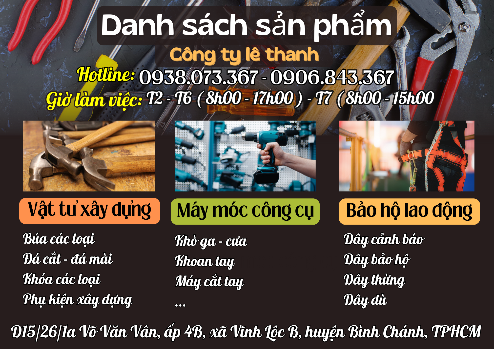 Địa chỉ : D15/26/1A Võ Văn Vân, ấp 4B, xã Vĩnh Lộc B, Huyện Bình Chánh, Thành phố Hồ Chí Minh (hẻm kế bên nhà sách Nguyễn Văn Cừ)